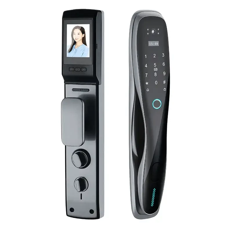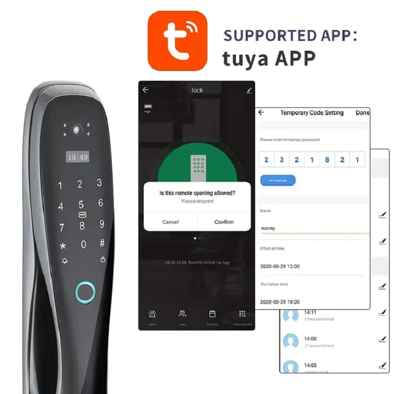 Smart life APP, you could check the records, also you can share the temporary code/Ekey with visitors, nannies, house keepers, tenants, guests, etc. Automatic door lock without handle, you only need to press the virtual button to lock the door when you go out. Emergency battery back-up, this electronic door lock would alarm if it is in low battery, you could temporary charging your lock by power bank or any power source with micro-USB port. Support remote via APP, convenient but safe?Semiconductor fingerprint recognition, refuse to copy the prosthesis fingerprint.. 1. 5 unlock ways: Fingerprint, Password, IC Card, Mechanical Key ,APP 2. Carved alloy Material Built Strong enough to protect your home; 3. Locking & Unlocking automatically with the newest automatic technology to free your hands; 4. Indoor double lock knob gives you one more safeguard; 5. Emergency power supply in case of lost power; 6. Built in Rechargeable lithium battery. Low battery warming. One time full charge can work about 3 month. 7. English Voice and menu 8. Query unlock records in the lock 9. Infrared Sensor Camera make it also can work well in dark environment 10. Suit for Lots of door type: Wooden door, stainless steel door, bronze door, Double door, Old-fashioned security doors 11. Left Open and Right Open All compatible